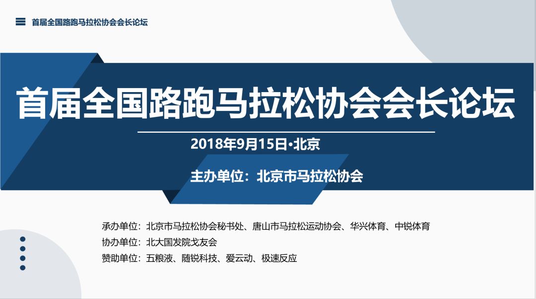 9月15日,首屆全國(guó)路跑馬拉松協(xié)會(huì)會(huì)長(zhǎng)論壇在北京市人衛(wèi)酒店舉辦,旨在為全國(guó)路跑馬拉松行業(yè)協(xié)會(huì)打造一個(gè)交流、合作、傳播的高端權(quán)威平臺(tái)。